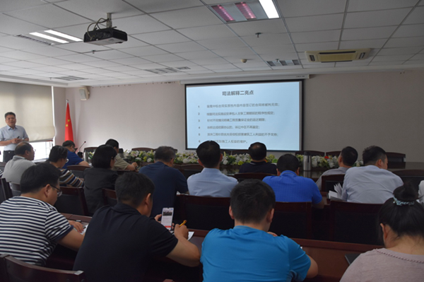 5月24日下午,根據(jù)集團(tuán)公司2019年度普法培訓(xùn)計(jì)劃要求,為大力宣傳學(xué)習(xí)新通過的《最高人民法院關(guān)于審理建設(shè)工程施工合同糾紛案件適用法律問題的解釋(二)》 (以下簡稱“解釋二”),集團(tuán)公司在25樓會議室開展了《“建設(shè)工程施工合同法律適用”解讀暨職工普法工作專題會議》。集團(tuán)公司60多名員工參加了本次培訓(xùn)。